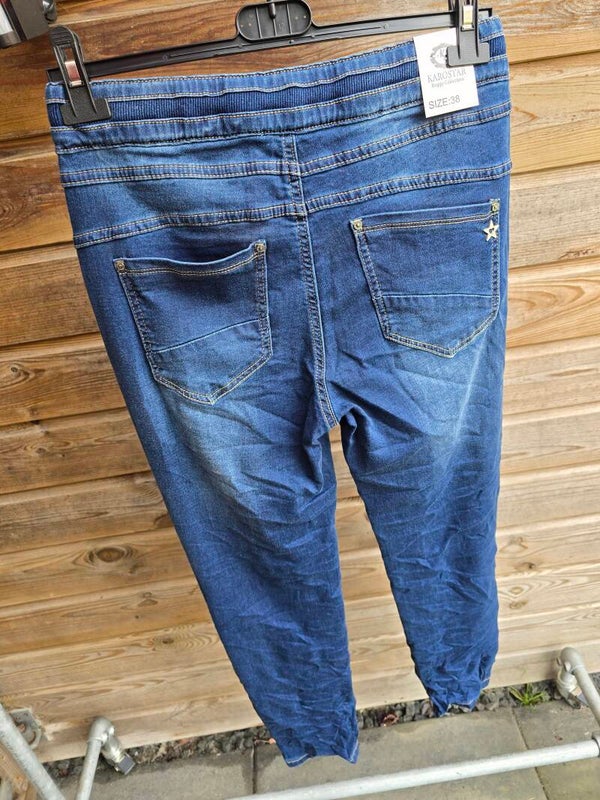 Heerlijke stretch model en hoog. Met koordje en zakken.